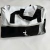 Our black and white duffel bag combines clean style with everyday practicality, featuring a bold logo and designed to store all your essentials — from shoes and outfits to grip and accessories — it offers plenty of space without sacrificing sleekness. Durable, versatile, and effortlessly chic, this bag is made to keep up with your active lifestyle.