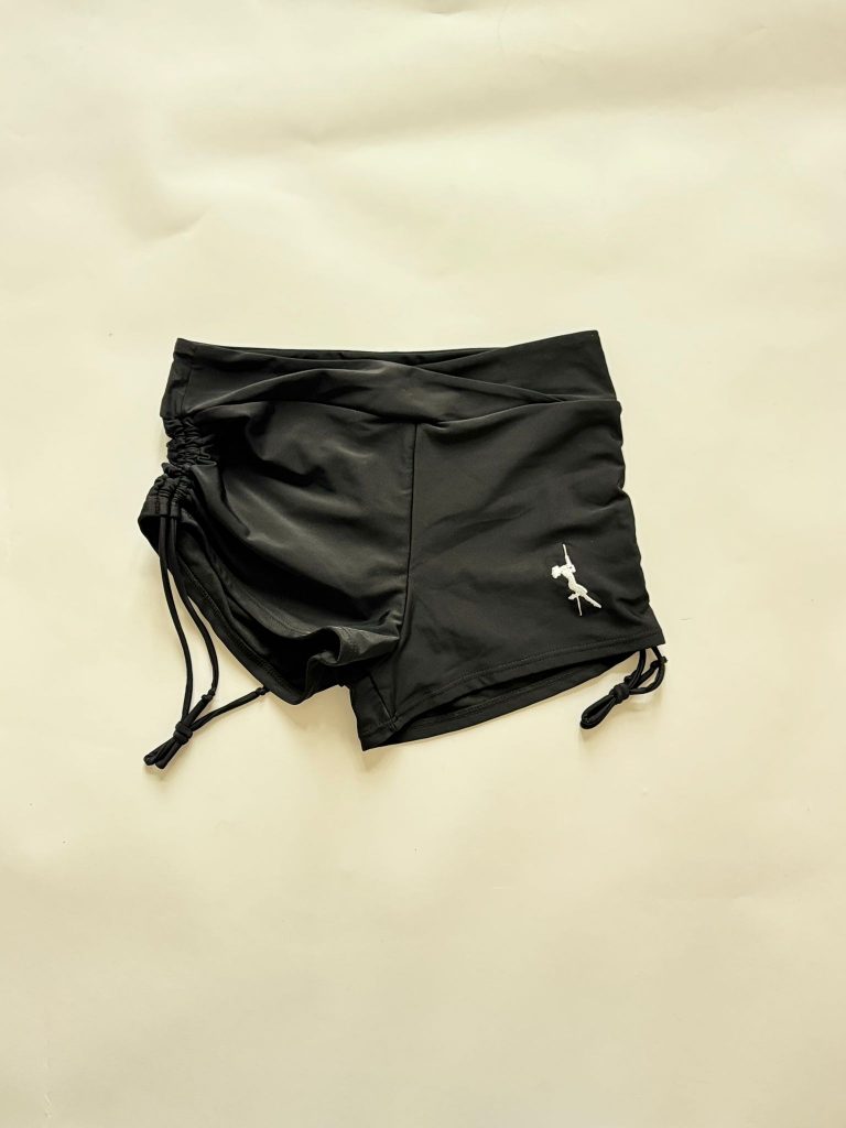 Move with confidence in these Criss-Cross Waist Pole Shorts, featuring adjustable side strings for a perfect fit. The scrunch bottom enhances your curves while the embroidered pole silhouette on the side adds a stylish detail. Comfortable, stretchy, and designed to move with you.