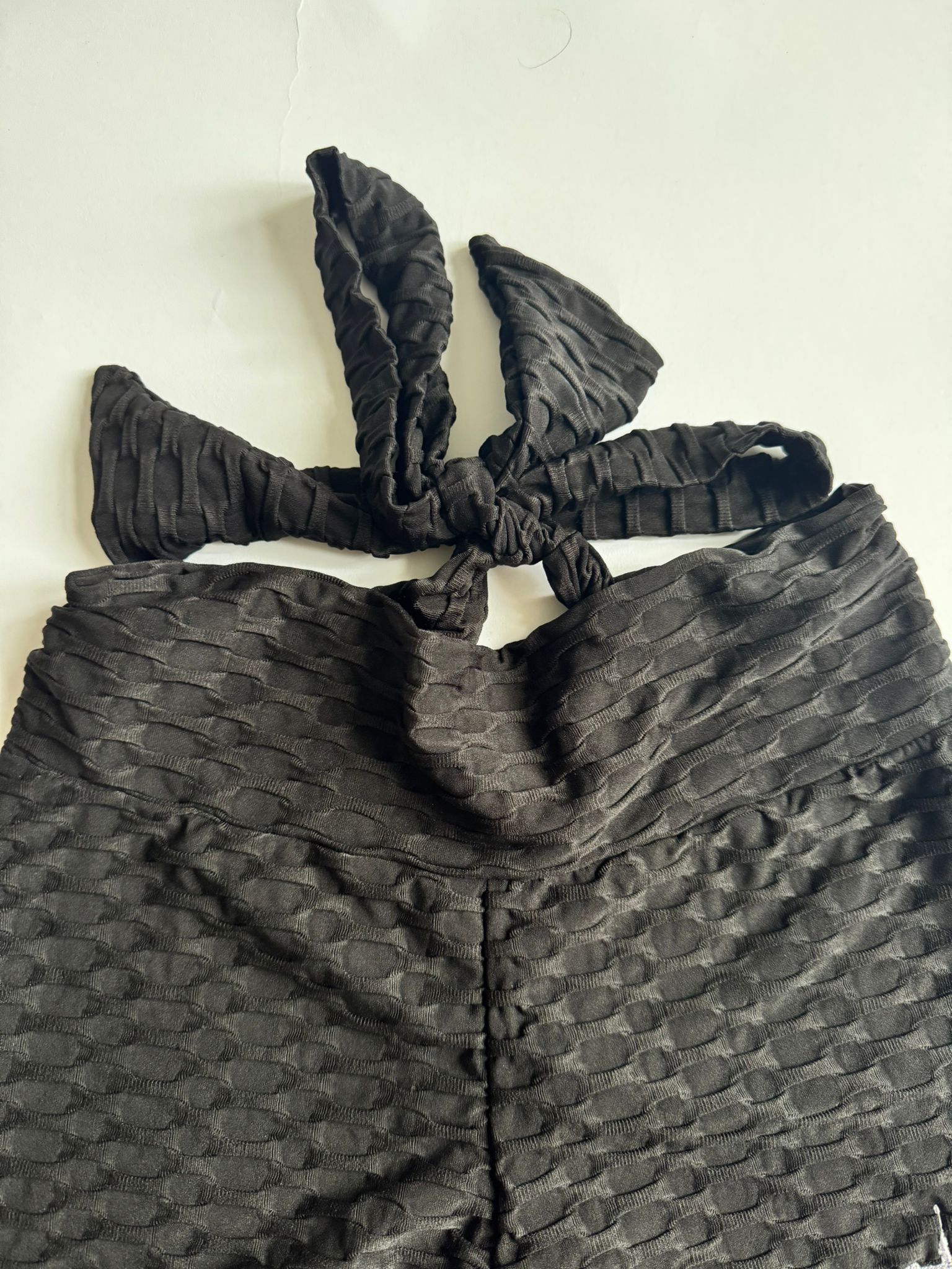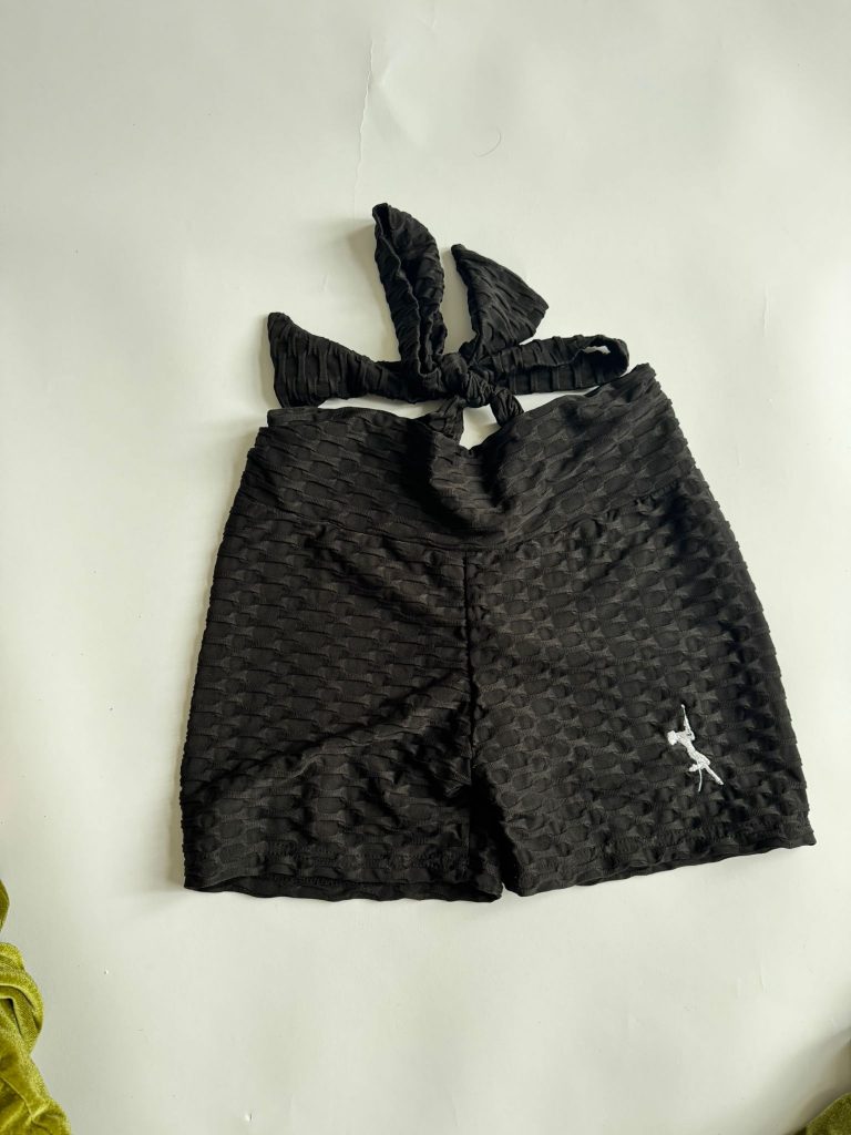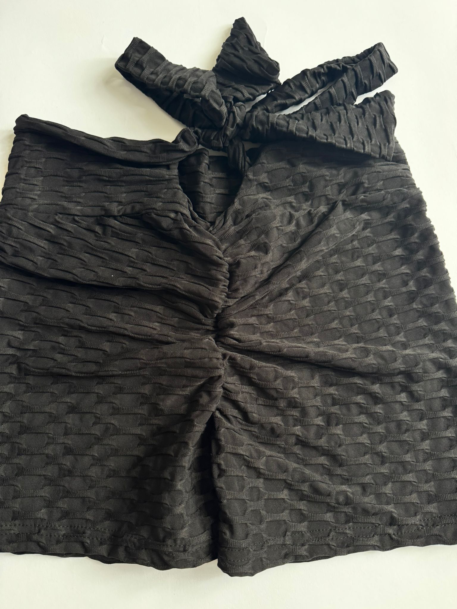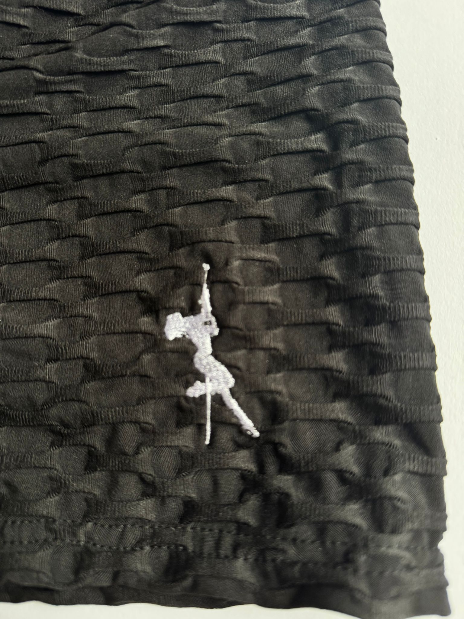 Pole Shorts, featuring a honeycomb pattern, ribbon tie design at the back, and a scrunch bum for the perfect lift and contour. Embroidered pole logo on the side. Designed for pole training or performance, they combine comfort, stretch, and a confident fit that moves with you.