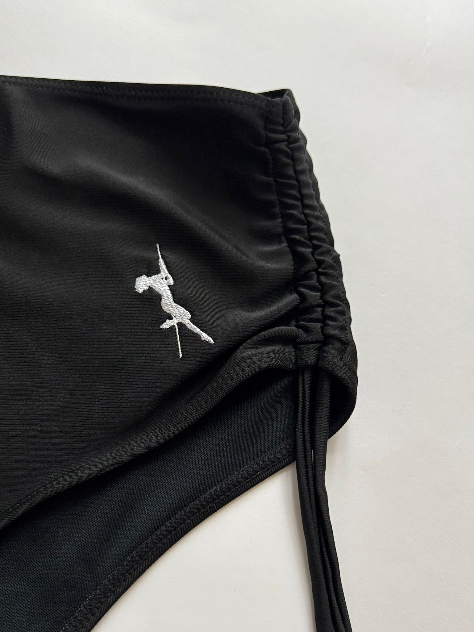 Train in comfort and confidence with our Pole Pants, featuring adjustable side strings to customize your fit and height, and an embroidered pole silhouette on the side. The soft, stretchy fabric moves effortlessly with you through every routine. Perfect for training, performing, or just feeling your strongest. These pants come with a black inside, as opposed to the other strings shorts that we sell.